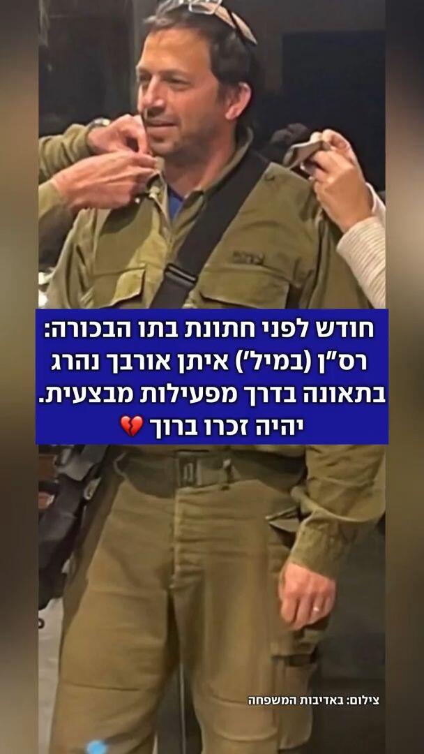 חודש לפני חתונת בתו: רס"ן איתן אורבך נהרג בתאונה בדרך מפעילות מבצעית